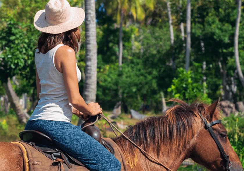 Wear comfortable clothing, long pants, and closed-toe shoes suitable for riding and light adventure. A hat, sunscreen, and insect repellent are also recommended for a more comfortable experience.
